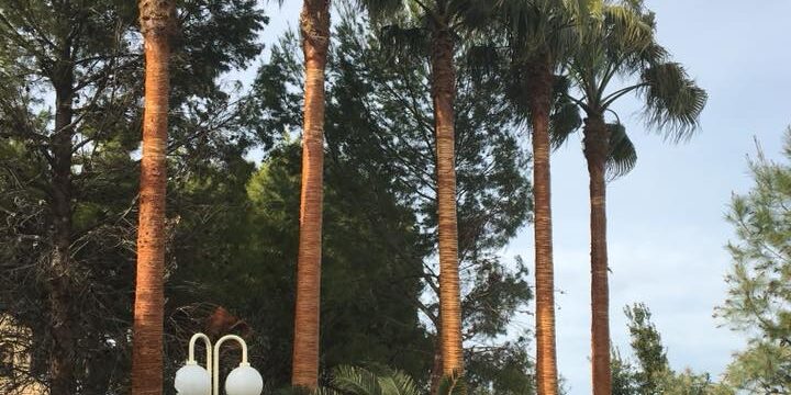 Limpieza de Washingtonias con un poco de necesidad en Zaragoza por Soler y Romero Jardinería.
