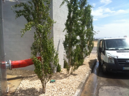 En ocasiones menos es más, en este caso queríamos conseguir que un deposito de incendios colocado erróneamente, quedase oculto por enormes paredes de vegetación. Estas trepan por una valla de simple torsión a mas de 6 metros de altura, nunca creímos que fuese capaz ninguna «trepadora» alcanzar semejante majestuosidad en una zona en la que el viento azota enormemente.