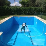 Una vez comprobemos que todo esta correcto, vaciamos el vaso y limpiamos todo el grueso de residuo orgánico que haya quedado del invierno. Después desinfectamos el vaso con ácidos especiales y maquinaria especial, pintamos en caso de necesidad y si es de gresite o poliéster darle un tratamiento de dureza para la cal del agua.
