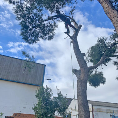 También trabajamos con las técnicas especializadas de trepa, ya que, en muchos casos la ubicación del árbol no permite el acceso de plataformas o grúas.