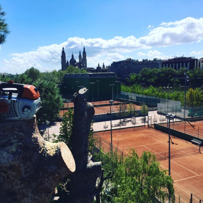 TRABAJOS DE TALA EN CENTRO DEPORTIVO DE ZARAGOZA Esta semana trabajamos talando en Centro Deportivo de Zaragoza . Se trata de unos grandes pinos dañados por el aire, que por su ubicación han sufrido importantes daños en sus ramas ( ramas partidas ) y varios de ellos han caído.Situados en una zona de césped muy…