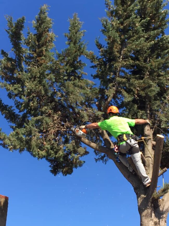 Trabajos de tala de ciprés en Zaragoza. Como la gran mayoría de las coníferas, son de hoja perenne y pueden alcanzar los 20 metros de altura. Su porte es piramidal, de crecimiento rápido en los primeros años de vida, ralentizándose después y pudiendo alcanzar los 300 años de vida. Poseen un tronco recto y de…